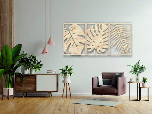 Modern Wooden Wall Art Large Leaves 3 Panels