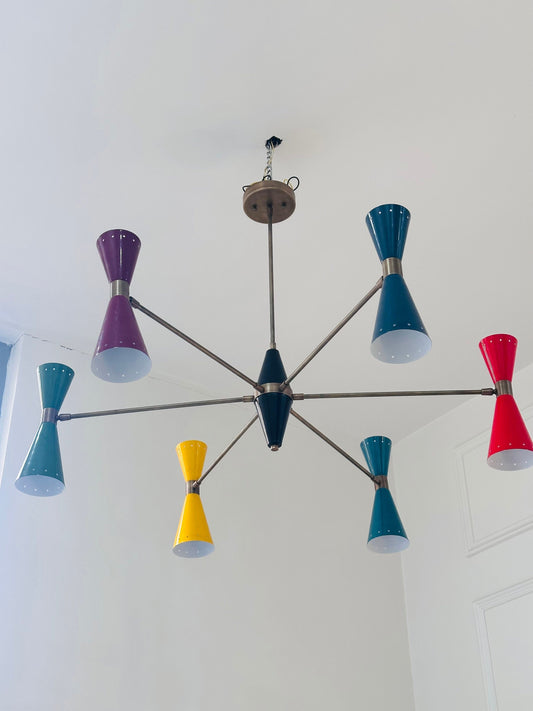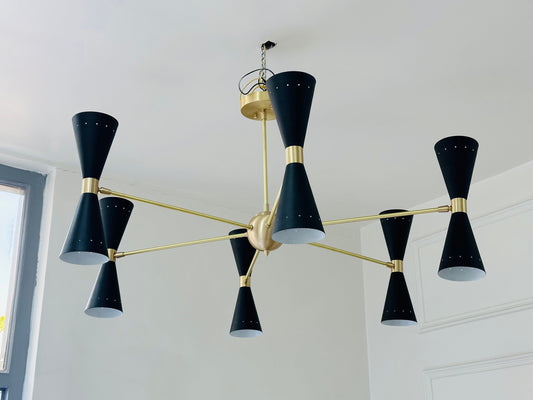 6 Arm 12 Light Handmade Mid Century Sputnik Chandelier