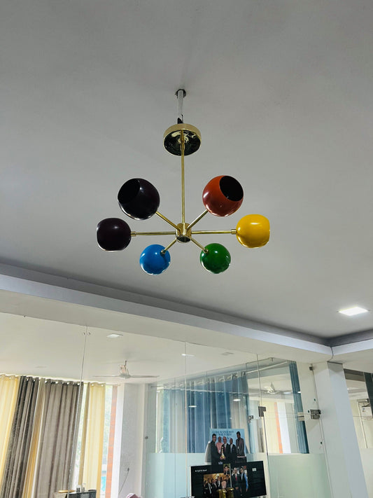Mid Century Brass 6 Arm Multi Color Sputnik Chandelier