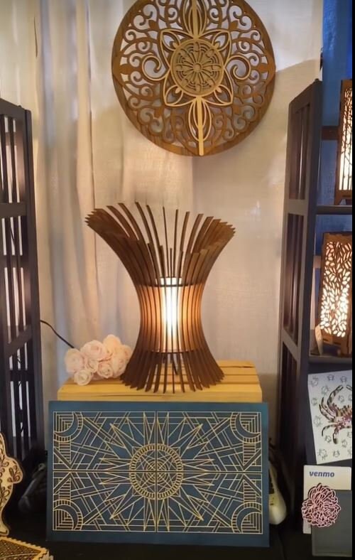 Angular Laser Cut Wooden Table Lamp